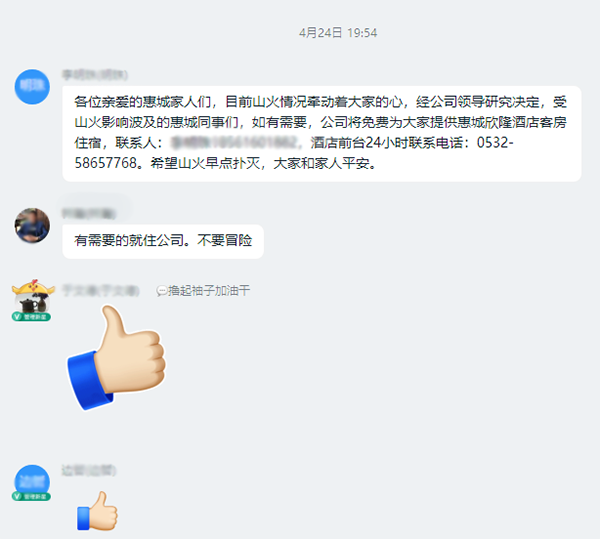 面對(duì)山火風(fēng)險(xiǎn),公司高效的應(yīng)急聯(lián)動(dòng)和貼心的人文關(guān)懷,讓全體員工感受到惠城大家庭的溫暖。未來,公司將繼續(xù)秉承“員工幸福”的管理目標(biāo),用實(shí)際行動(dòng)關(guān)愛員工、理解員工,以人文關(guān)懷提升員工的幸福感和凝聚力,促進(jìn)員工健康成長和企業(yè)持續(xù)發(fā)展。
